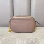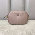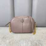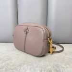 A most-loved shape. The McGraw Camera Bag is softly structured in pebbled leather. It has a die-cut Double T, vertical pick stitching, sewn by hand, and an adjustable chain-accented strap.