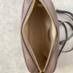 -Adjustable chain and leather crossbody strap with 22.2″ (56.5cm) drop