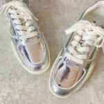 - Mirrored metallic polyurethane upper